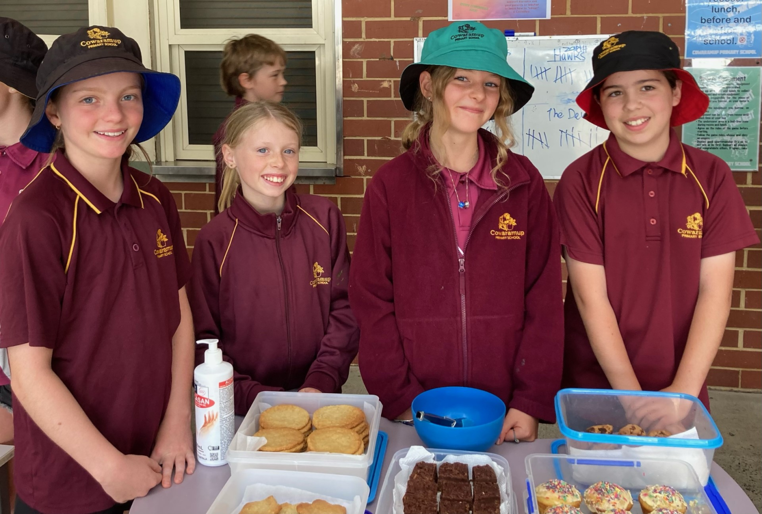 Cowaramup Primary School students Elizabeth, Lille, Leila and Finn selling their baked goods. Picture supplied.