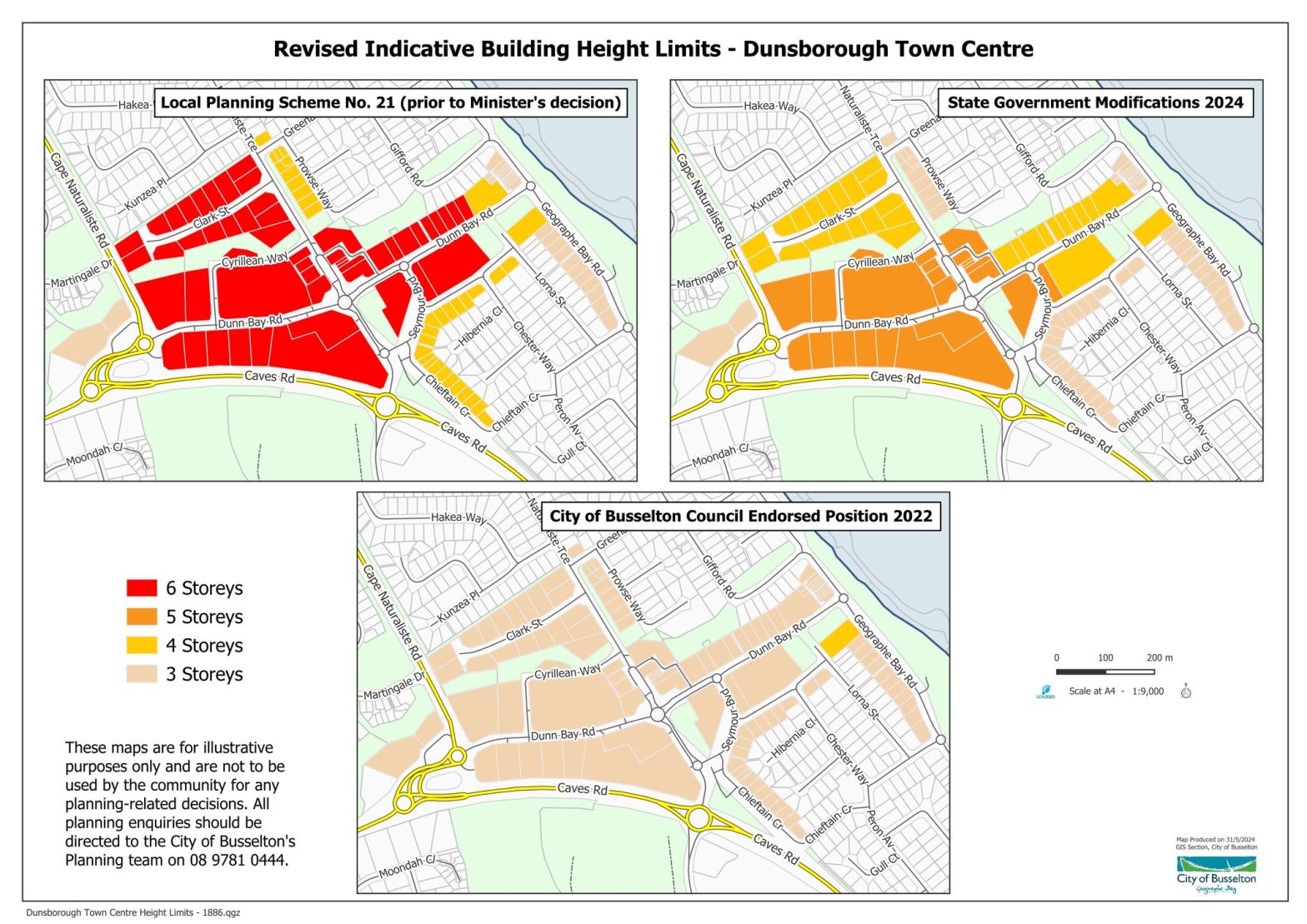 The decision was announced by the Minister for Planning despite the City of Busselton Council’s effort to restrict heights to 3 storeys throughout those areas.