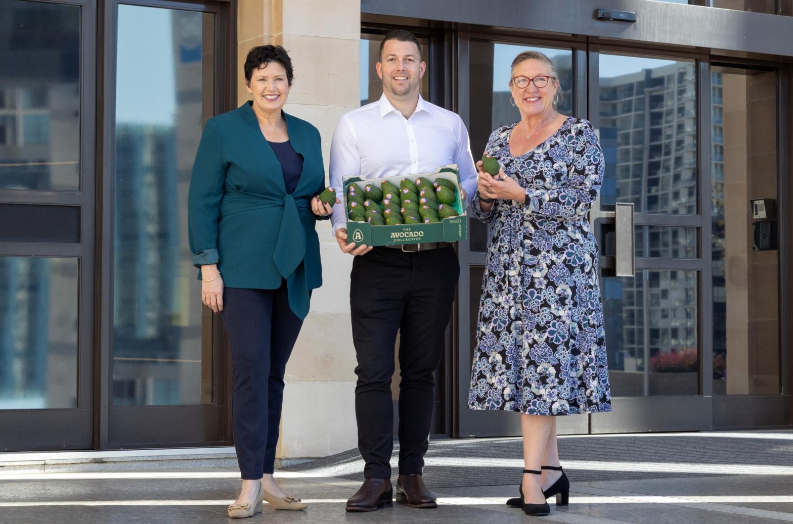 Food and Agriculture Minister Jackie Jarvis celebrating WAs first shipment of avocados to Thailand with The Avocado Collective General Manager Joshua Franceschi, and Jane Kelsbie MLA Warren-Blackwood.